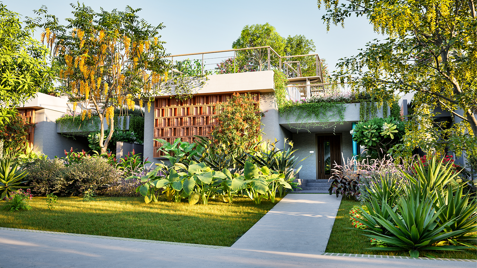 Aloor is designed to let light, air, and greenery flow freely. Wake up to tree-filtered sunlight, breathe in the scent of your garden, and let cool breezes fill your home. Whether it’s a morning coffee under your rooftop pergola or an evening by your kitchen’s edible garden, nature is always within reach.